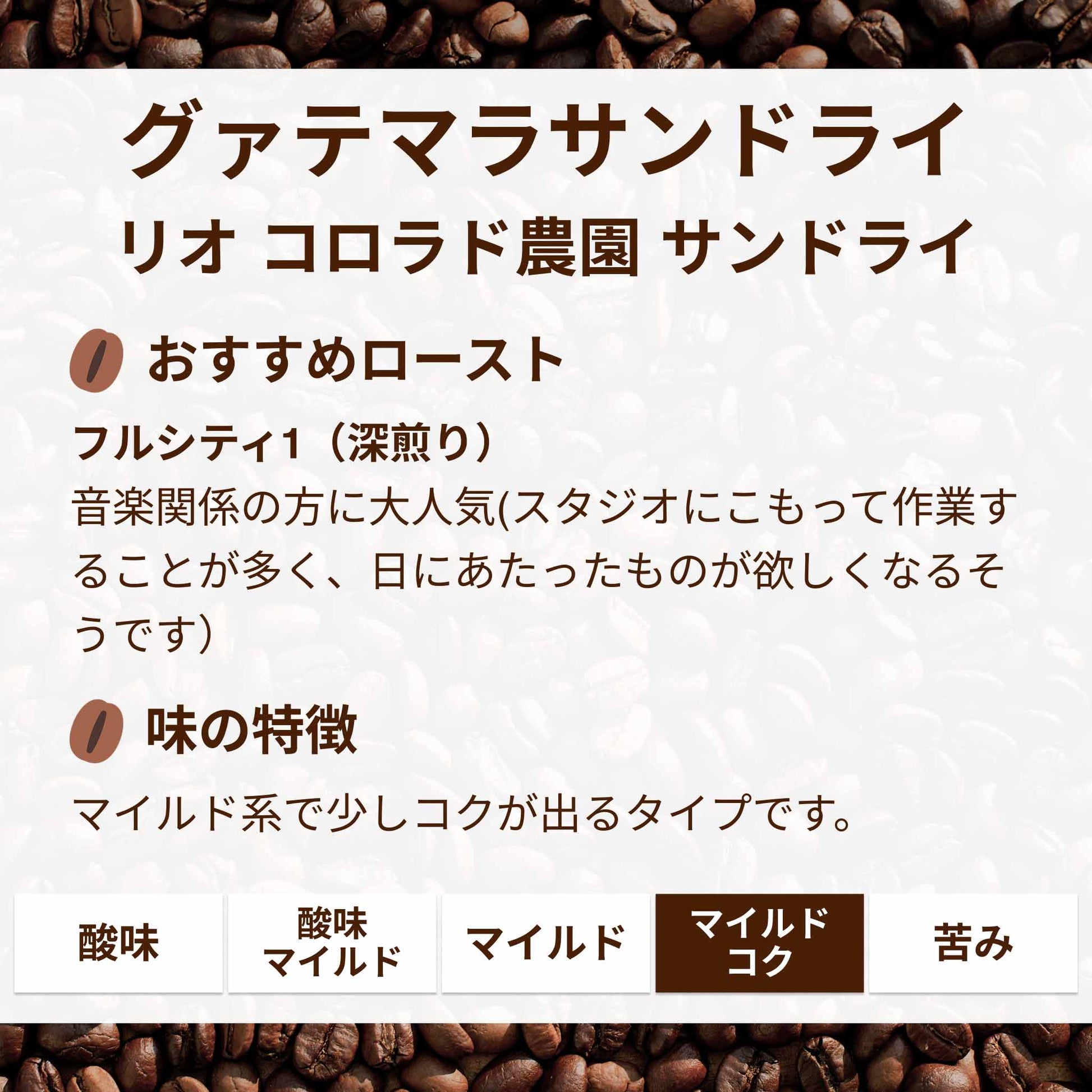 コメント:マイルド系で少しコクが出るタイプ。音楽関係の方に大人気(スタジオにこもって作業することが多く、日にあたったものが欲しくなるそうです)
