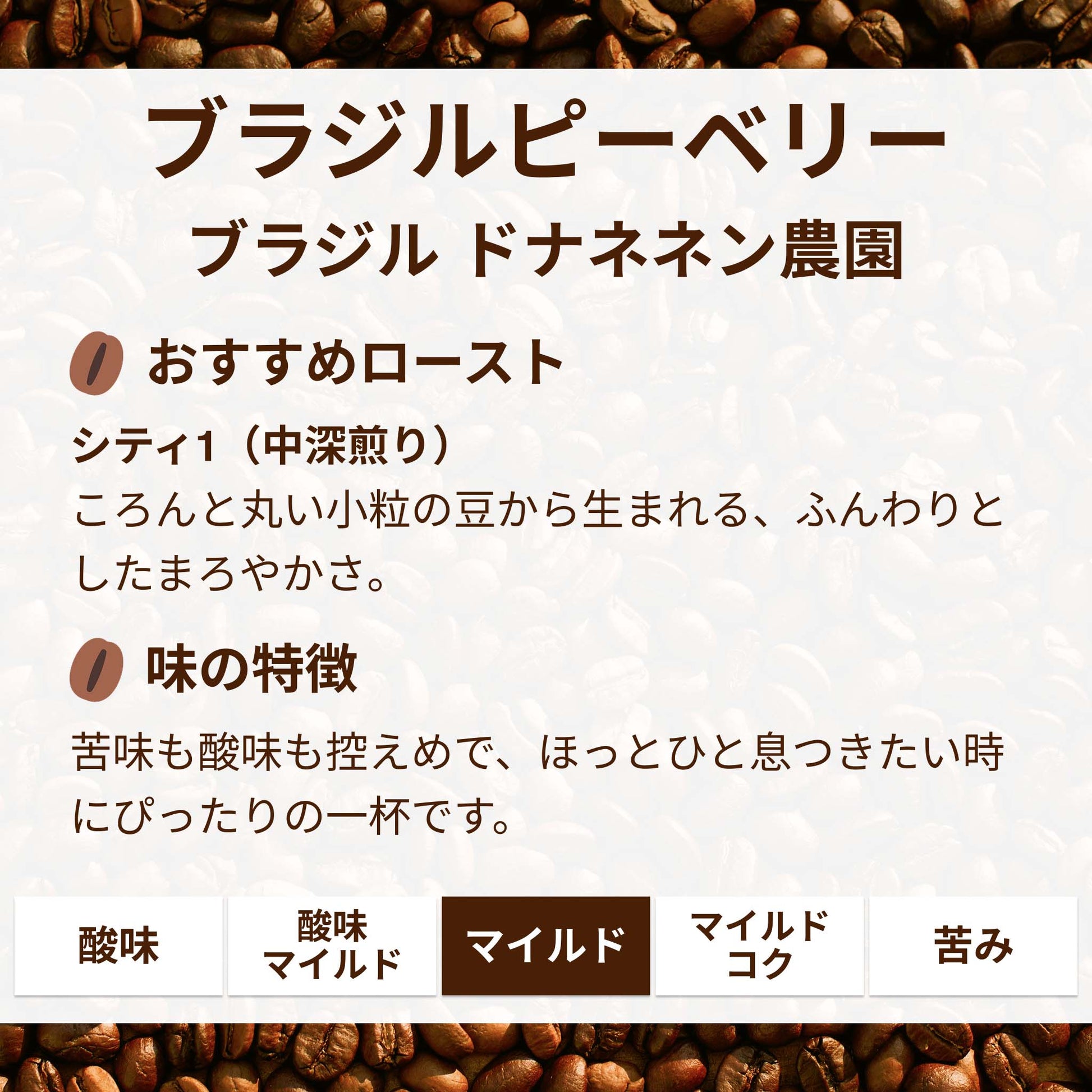 コメント:ころんと丸い小粒の豆から生まれる、ふんわりとしたまろやかさ。苦味も酸味も控えめで、ほっとひと息つきたい時にぴったりの一杯です。